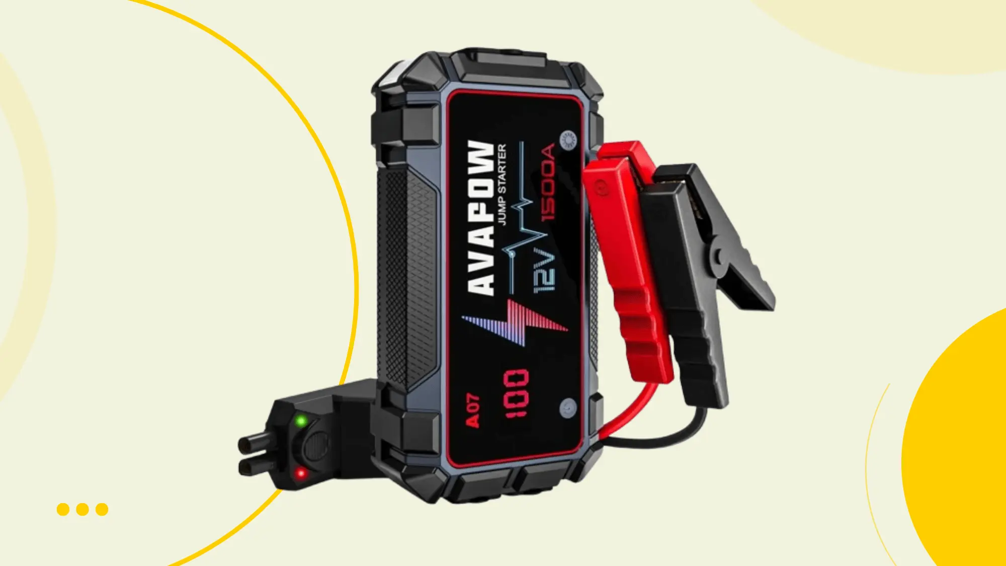 Experience reliable jump starts with the AVAPOW A07 Battery Jumper Starter. Features 1500A peak current, IP65 waterproof rating, USB quick charge, and built-in LED emergency light for all your 12V vehicles.